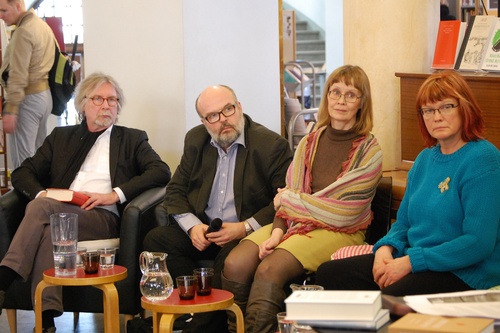 Agricola-ehdokkaat vasemmalta oikealle: Juhani Lindholm, Martti Anhava, Arja Pikkupeura sekä Kristiina Drews.