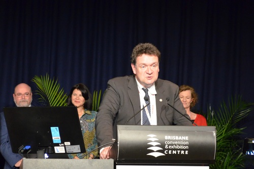 Kongressin teema oli Disruption and diversification, ja tuota sanaparia käsiteltiinkin monessa esitelmässä, sillä sanat ja teema ovat kovin monitulkintaisia. Kyse on alan murroksesta monessa mielessä ja toisaalta alan monimuotoistumisesta. Kongressi oli varsin mittava, sillä osallistujia oli yli 600 ja parhaimmillaan yhtäaikaisia rinnakkaissessioita oli meneillään jopa kymmenessä eri salissa. Esitelmöitsijät olivat niin käännöstieteen tutkijoita kuin aivan käytännön työn tekijöitäkin. Aboriginaaliasiat vahvasti esillä Australiassa kun oltiin, niin aboriginaaliasiat olivat tavalla tai toisella aina läsnä, ja useimmat puheenvuorot aloitettiin toteamuksella "We acknowledge the traditional owners of the land and past and present elders". Avajaisseremonioiden ja niihin sisältyneen aboriginaaliesityksen digeridoon hyrinän tauottua ensimmäisessä plenaarissa Australian Pohjoisterritorion osavaltiollisen aboriginaalikielten tulkkauspalvelun johtaja Colleen Rosas ja kolme tulkkia kertoivat työstään. Alkuperäiskansojen asema tuntui ainakin asiaa tarkemmin tuntemattomalle ulkopuoliselle aika vahvalta, vaikka historiallisen vainon ja väheksymisen painolastia toki kannetaan yhä. Kansoja/heimoja/kieliä/maita (kaikkia nimityksiä käytetään) on 350–400, ja tulkit kertoivat työskentelevänsä ihmisten kanssa, joille englanti saattaa eri aboriginaalikielten jälkeen olla vasta 7. vieras kieli. Pääosin tulkkausta tehdään jonkin alkuperäiskielen ja englannin välillä, mutta välillä tulkataan myös eri aboriginaalikielten välillä. Tulkit joutuvat joskus varsin ristiriitaisten odotusten kohteeksi, ja puhtaasti kielten välisen tulkkauksen (jos nyt niin voi edes sanoa) lisäksi on tehtävä paljon myös ns. kulttuuritulkkausta molempiin suuntiin. Kuulimme kongressin kuluessa esimerkiksi saaresta, jonka vain muutaman sadan ihmisen väestössä käytännössä kaikki puhuivat saaren 5–6 kieltä, mutta tulkkausta voidaan silti tarvita, sillä kulttuureissa on tarkkoja sääntöjä siitä, kuka saa puhua suoraan kenellekin ja mitä kieltä missäkin yhteyksissä saa käyttää. Myös jääviysasiat on käsiteltävä eri tavoin kuin länsimaisissa yhteyksissä, sillä esimerkiksi yksi tulkeista kertoi, että hänen "lähiperheeseensä" (immediate family) kuuluu noin 500 ihmistä. Tulkit joutuvat yhä taistelemaan monia ennakkoluuloja vastaan, mutta vahvasti he ainakin esittivät sellaisia ajatusmalleja kuin että tulkkia tarvitsee palveluntuottaja (esim. englanninkielinen oikeuslaitos) eikä suinkaan maan ikiaikaisen alkuperäiskansan jäsen ja että on palveluntuottajan tehtävä yksinkertaistaa omaa jargoniaan niin, että sen tulkkaaminen kulloisellekin alkuperäiskielelle on mahdollista. Anthony Pym: Kääntäjät tekevät muutakin kuin kääntävät Ensimmäinen varsinainen plenaaripuhuja oli käännöstieteilijä Anthony Pym, jonka aiheena oli "Kääntäjät tekevät paljon muutakin kuin kääntävät". Hän haastoi monien eettisten koodistojen tiukkaa sääntelyä siitä, että kääntäjä ei esimerkiksi saa lisätä tai poistaa mitään tai neuvoa kumpaakaan osapuolta, sillä juuri kääntäjällähän olisi asiantuntemusta tehdä moisia asioita tarpeen vaatiessa. Taustaksi Pym kävi läpi nykyistä australialaista koodistoa ja esitti sääntöjen historiallis-poliittisia taustoja alkaen espanjalaisten konkistadorien ohjeista. Esitys oli erittäin mielenkiintoinen ja hauskakin, eikä Pym toki ollut heittämässä ohjeita kokonaan romukoppaan vaan halusi lähinnä laajentaa kääntäjän toimenkuvaa sopivissa kohdissa – ja uskoisin monen käytännön työtä tekevän usein toimivankin juuri niin kuin Pym esitti. Kyse onkin ehkä ennemmin siitä, missä tilanteissa ja toimeksiannoissa henkilö katsoo toimivansa nimenomaan kääntäjänä tai tulkkina ja siten koodiston puitteissa, ja milloin ja missä määrin toimeksiannot sisältävät "muutakin kuin puhtaasti kääntämistä". Toivoisin käytännön työn tekijöiden useimmiten osaavan erottaa, mistä kulloinkin on kyse. Jemima Napier: Maailmanlaajuinen yleiskatsaus viittomakielen tulkkaukseen Kongressin toisena päivänä ensimmäisen plenaarin piti viittomakielen tulkki ja tutkija Jemima Napier Herriot-Watt-yliopistosta. Hän piti esityksensä sen viittomakielellä, mikä oli hyvä tapa todistaa monille sitä alaa täysin tuntemattomille, että viittomakielet ovat aivan yhtä monipuolisia luonnollisia kieliä ja sopivat kaikenlaiseen viestintään siinä missä puhututkin kielet. Maailmassa on noin 138 nimettyä erillistä viittomakieltä, ja karkeiden arvioiden mukaan vähintään 70 miljoonaa viittomakielen käyttäjää ja noin 25 000–30 000 viittomakielen tulkkia. Napier antoi hyvän yleiskatsauksen viittomakielistä ja niiden tulkkauksesta ja kertoi niihin liittyvistä muutostekijöistä, kuten toisaalta syntyperäisten viittomakielisten määrää pienentävästä sisäkorvaistutteiden yleistymisestä ja toisaalta viittomakielten saamasta kasvavasta tunnustuksesta esimerkiksi monen maan kielilainsäädännössä. Kiinnostus viittomakieliin näkyy muun muassa siinä, että viittomakieli on Yhdysvalloissa neljänneksi ja Britanniassa viidenneksi tai kuudenneksi suosituin opiskeltava vieras kieli. Glenn Flores: Käännökset ja tulkkaukset voivat olla elämän ja kuoleman kysymys Jos oli päivän ensimmäinen plenaari ollut aika optimistinen hyvän mielen esitys, niin toinen löikin sitten pöytään karua kerrottavaa siitä, mitä tapahtuu, kun kielimuuria ei pystytäkään ylittämään. Lääkäri ja terveyspolitiikan tutkija Glenn Flores oli seurannut melkoista määrää potilastapauksia terveydenhuollossa ja sairaanhoidossa Yhdysvalloissa ja esitti tilastotietoja siitä, kuinka käännökset ja tulkkaus voivat aivan kirjaimellisesti olla elämän ja kuoleman kysymyksiä. Jos perheessä ei osata valtakieltä, kielimuuri vaikuttaa suoraan ihmisten terveydentilaan ja ennakoivaan terveydenhuolt