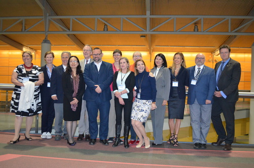 Maailmankongressissa valittiin FIT:in hallitus vuosille 2017–2020: Puheenjohtaja Kevin Quirk (NFF, Norja); vara-pj:t Alison Rodriguez (NZSTI, Uusi-Seelanti), Alan Melby (ATA, USA) ja Reina de Bettendorf (APTI, Panama); pääsihteeri Réal Paquette (OTTIAQ, Kanada); rahastonhoitaja Sandra Bertolini (AITI, Italia); hallituksen jäsenet Eleanor Cornelius (SATI, Etelä-Afrikka), Iwan Davies (ITI, Iso-Britannia), Olga Jegorova (UTR, Venäjä), Pia von Essen (SKTL, Suomi), Iris Gretchen Gonzalez (ACTI, Kuuba), Reiner Heard (ATICOM, Saksa), Alexandra Jantscher-Karlhuber (UNIVERSITAS, Itävalta), Alejandra Jorge (AATI, Argentiina), Joong-Chol Kwak (KATI, Etelä-Korea), Marta Morros (APTIC, Espanja) ja Pin Yang (TAC, Kiina). Kaikkia hallituksen jäseniä ei valitettavasti tavoitettu samaan kuvaan. (Lähde: www.fit-ift.org) Kuva: Heikki Karjalainen