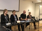 Kristiina Papunen (vas), Helena Sjöberg, Johan Tiedemann ja Sanna Oksanen kertovat meille työstään PN:ssa. © Diana Berber