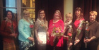 Kuvassa vasemmalta oikealle: Ruth Jakobson, Sirpa Alkunen, juhlavuosistipendin saanut Marjo-Riina Välimaa, Liisa Laakso-Tammisto, Ruta Rannat, Pia von Essen sekä Tarja Sirén.