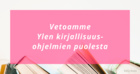 Suomen keskeiset kirjallisuusjärjestöt ilmaisevat huolensa Ylen vähentyneestä kirjallisuusohjelmien tarjonnasta erityisesti televisiossa. Aamu-tv:n yhteydessä nähty kymmenminuuttinen Aamun kirja oli ainoa säännöllinen kirjallisuusohjelma Ylen televisiokanavilla. Nyt tämäkin pitkäaikainen ohjelma on lopetettu. Rikkaan kirjallisuuskulttuurin ylläpitämiseksi Suomessa olisi tärkeää, että Yle panostaisi korkeatasoiseen kirjallisuusohjelmaan ja ottaisi osavastuun lukemisen ja lukutaidon edistämisestä yhdessä kansallisten, yksityisten ja kolmannen sektorin toimijoiden kanssa. Vetoamme sekä Ylen lakisääteisiin tehtäviin että ajankohtaisiin tarpeisiin liittyen sivistykseen ja demokratian vaalimiseen. Ylellä on tärkeä asema kirjallisuuden ja lukemiskulttuurin edistäjänä ja lukutaidon puolestapuhujana. Ylen ohjelmat ovat merkittävässä roolissa myös koulujen kirjallisuusopetuksessa: kouluissa on yleisesti käytetty Aamun kirjaa ja muita Ylen kirjallisuuskeskusteluja oppituntien sisältöinä. Näitä tarvitaan jatkossakin. Lukutaito on kansakunnan hyvinvoinnin ja yhteiskunnan toimivuuden edellytys. Valtio on onneksi havahtunut tähän ja yhä voimakkaammin panostanut suomalaisten lukutaidon ja lukuharrastuksen lisäämiseen. Kansallisen lukutaitofoorumin työn tuloksena syntyi valtakunnallinen Lukuliike. Parhaillaan ollaan aloittamassa kansallisen lukutaitostrategian laatimista, jonka onnistunut toimeenpano edellyttää panostusta kaikilta valtiollisilta toimijoilta. Tilastojen valossa suomalaisten kiinnostus kirjallisuutta kohtaan kasvoi vuonna 2020 merkittävästi. Lukukeskuksen kyselyn mukaan 23 % aikuisista luki korona-vuoden aikana enemmän kuin aikaisemmin ja 60 % on huolissaan siitä, etteivät lue tarpeeksi. Kirjamyynnin ja lainamäärien kasvun perusteella voidaan sanoa, että kirjallisuus kiinnostaa yleisöä entistä enemmän. Ylen radiokanavilla ja sosiaalisen median kanavissa kuullaan ja nähdään kirjallisuuskeskustelua, mutta kirjallisuus ansaitsisi laajaa yleisöä tavoittavia ohjelmapaikkoja televisiosta. Kirjallisuuskeskustelut puhuttelevat ja luovat sellaista yhteisöllisyyttä ihmisten välille, jota juuri tässä ajassa kipeästi kaivataan. Kyse ei ole suinkaan pelkästään kirjallisuudesta: tarvitsemme lukutaitoa ja rikasta kirjallista kulttuuria pitääksemme yllä sivistysvaltiota ja demokratiaa. Tämä on totta tänä päivänä ehkä enemmän kuin koskaan. Finlands svenska författareförening Lukukeskus - Läscentrum Sanasto Suomen Kirjailijaliitto Suomen tietokirjailijat – Finlands facklitterära författare rf Suomen kääntäjien ja tulkkien liitto ry - Finlands översättar- och tolkförbund rf