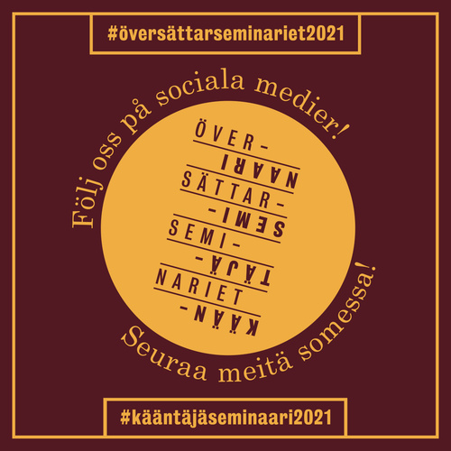 Anmälan är nu öppen – Early bird-priserna gäller fram till 21.6.2021! Svensk-finska översättarseminariet för översättare, tolkar och proffs inom språkvården vars språkpar är finska-svenska arrangeras år 2021 redan för 49:e gången. Arrangörer är Finlands översättar- och tolkförbund (FÖTF) och Institutet för de inhemska språken. I år ordnas seminariet i form av ett två dagars webbinarium 23–24.9.2021. Under detta års seminarium fördjupar vi oss i översättning av lättläst sakprosa och lättläst skönlitteratur under ledning av Ari Sainio (Selkokeskus) och Maria Österlund (LL-Center). Författaren Sirpa Kähkönen och översättaren Mattias Huss diskuterar sitt samarbete kring översättningen av Kähkönens böcker till svenska. Under seminariet får vi också höra vilka hjälpmedel medicinska översättare har till sitt förfogande samt Lauri Saarela, redaktör och språkgranskare på Duodecim. Tom Pettersons och Lena Sjöbergs (Helsingfors universitet) tema är medicinska termer och medicinskt språk. Åsa Holmér och Karin Webjörn (Språkrådet i Sverige) belyser utvecklingen av Rikstermbanken och aktuella termfrågor. Anna Maria Gustafsson (Institutet för de inhemska språken) tar upp aktuella språkfrågor. Marja Hämäläinen-Herjo (Skatteförvaltningen) berättar om översättning och språkvård i Skatteförvaltningen. ”Seminarieprogrammet är mångsidigt i år, och många teman är aktuella för såväl översättare och tolkar som proffs inom språkvården. Att nätverka är säkert fortfarande mycket viktigt, och också jag själv väntar med iver på att få möta flera proffs inom språkparet svenska-finska, även om det denna gång sker under ett webbinarium”, kommenterar Iiris Näkki, färsk konferenssekreterare för finsk-svenska översättarseminariet. "Finlands översättar- och tolkförbund gläder sig över det långvariga samarbetet med Institutet för de inhemska språken. Det känns bra att vi också under den pågående pandemin kan svara på publikens behov, och ordna seminariet på distans. År 2022 firar seminariet 50-årsjubileum, och vi hoppas att då kunna träffa seminariedeltagarna ansikte mot ansikte", berättar Jenni Kavén från Finlands översättar- och tolkförbund. "Alla som arbetar med finska och svenska eller som är intresserade av dessa språk och deras översättning är välkomna att följa svensk-finska översättarseminariets webbinarium – vi önskar att vårt webbinarium når alla dem som är intresserade av det finska och det svenska språket, också dem som bor utomlands!" tillägger Kavén. Du hittar seminariet också på Facebook och med hashtaggen #kääntäjäseminaari2021 och #översättarseminariet2021. Program Anmälan Mer information och kontakt