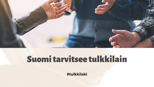 Yhteensä 20 ammattiliittoa, etujärjestöä, oppilaitosta ja kielialan yritystä vaativat, että Suomeen säädetään tulkkilaki julkishallinnossa tarvittavan tulkkauksen laadun varmistamiseksi. Aloitteen takana ovat tulkkausalan järjestöt Kieliasiantuntijat, Suomen kielipalveluyritykset sekä Suomen kääntäjien ja tulkkien liitto.