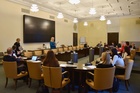SKTL:n puheenjohtaja Sirpa Alkunen ja toiminnanjohtaja Jenni Kavén välittivät liiton jouluterveiset sivistysvaliokunnan kokouksessa eduskunnassa 5.12.