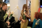 SKTL:n toiminnanjohtaja Karola Baran ojentamassa ehdokkaille ruusut.