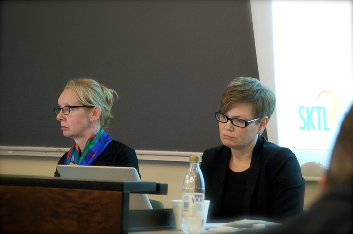 Kokouksen puheenjohtajana toimi Teija Potenze (vas.) ja sihteerinä SKTL:n toiminnanjohtaja Karola Baran.