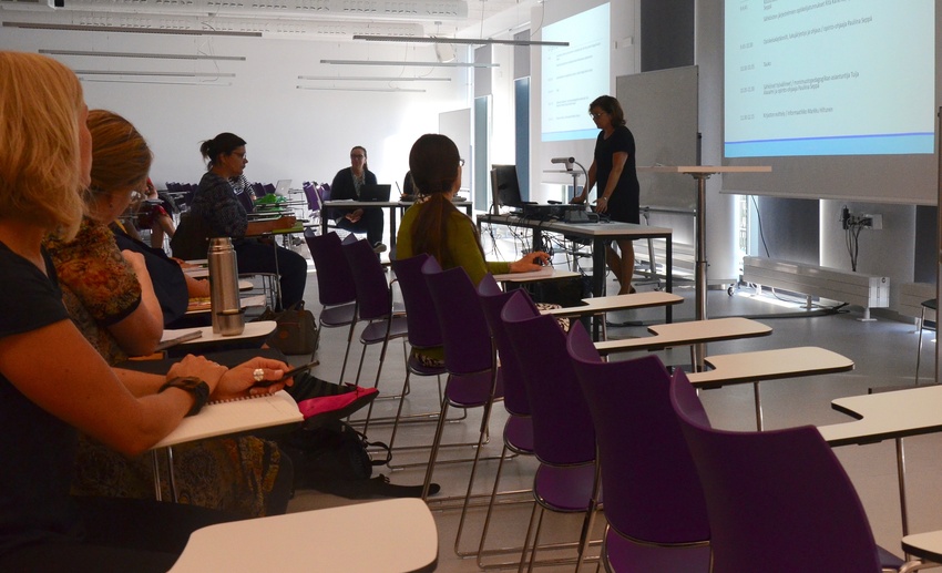 ![]() Oikeustulkkauksen erikoistumiskoulutus käynnistyi Diak-ammattikorkeakoulun koordinoimana maanantaina 27.8. Ainutlaatuinen koulutus tarjoaa korkeakoulututkinnon suorittaneille tulkeille mahdollisuuden erikoistua oikeustulkkauksen asiantuntijoiksi. Koulutus on myös väylä oikeustulkkirekisteriin. Koulutusta on valmisteltu O-ERKO nimellä vuodesta 2016 alkaen. Koulutuksen suunnitteluun osallistuivat Tampereen yliopisto, Helsingin yliopisto, Turun yliopisto, Vaasan yliopisto, Diakonia-ammattikorkeakoulu (Diak) ja Humanistinen korkeakoulu (Humak). Ensimmäisen koulutuksen toteuttajina ovat Diak, Helsingin yliopisto, Humak ja Tampereen yliopisto. Erikoistumiskoulutuksen koordinaattorina toimii Diak ja sen projektipäällikkönä Diakin tulkkauksen yliopettaja Gun-Viol Vik. Suunnitteluvaiheessa Diakin kanssa on tiiviissä yhteistyössä toiminut toteuttavien korkeakoulujen ja yliopistojen tulkkauksen asiantuntijoita. ”Korkeakoulujen yhteistyöllä saamme koulutuksen käyttöön maamme parasta oikeustulkkauksen osaamista”, Vik kertoo. ”Erityisen iloinen olen siitä, että eri korkeakoulujen välisellä yhteistyöllä sekä yhteistyöllä työelämän kanssa voimme tarjota erittäin monipuolisen ja asiantuntijuuteen perustuvan koulutuksen.” Ensimmäisellä kurssilla on kaikkiaan 21 opiskelijaa, joiden kielinä ovat suomalainen viittomakieli (7 opiskelijaa), venäjä (6 opiskelijaa), arabia (4 opiskelijaa), englanti (2 opiskelijaa) ja ruotsi (2 opiskelijaa). Vik kertoo, että koulutukseen on saatu erittäin motivoituneet opiskelijat, jotka ovat taustaltaan nimenomaan erikoistumiskoulutukseen sopivia. Oikeustulkkauksen erikoistumiskoulutus kestää lukuvuoden, ja sen suorittaminen antaa kelpoisuuden hakea oikeustulkkirekisteriin. Koulutus on tarkoitettu ensisijaisesti tulkkausalan ammattilaisille, joilla on korkeakoulututkinto ja jotka haluavat syventää työn ja koulutuksen kautta hankkimaansa ammattitaitoa ja asiantuntemusta oikeustulkkauksen alalla. |