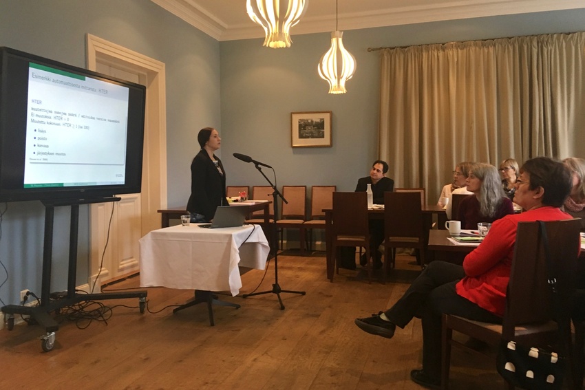![]() ![]() ![]() Kokous pidettiin Turussa Hus Lindmanin tiloissa lauantaina 30.3.2019. Kyseessä oli toinen kerta kun liiton kevätkokous järjestettiin Turussa ja kuudes peräkkäinen vuosi, kun kevätkokous on pidetty liiton paikallisosaston isännöimänä. Kokouksen puheenjohtajana toimi Gun-Viol Vik ja sihteerinä SKTL:n toiminnanjohtaja Kristiina Antinjuntti. Kokoukseen osallistui yhteensä 28 jäsentä. Paikalla oli 26 varsinaista jäsentä ja 2 opiskelijaa. 3 jäsentä oli edustettuna valtakirjalla. Kevätkokouksessa käsiteltiin sääntömääräiset asiat: liiton vuosikertomus ja tilinpäätös vuodelta 2018. Kokouksessa hyväksyttiin myös liiton sijoitusperiaatteet. Ennen varsinaista kokousta piti Maarit Koponen (Turun yliopisto) vuosikokousesitelmän aiheesta Onko konekäännös jo "ihmisen tasoista"? Konekääntimien laatuarvioinnista ja sen perusteista. Esitelmän tallenne on katsottavissa SKTL:n Vimeo-tilillä. |