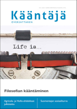 2/2011Filosofian kääntämisestä / Asioimistulkiksi ammattikorkeakoulussa / 11 kysymystä kääntäjälle – Kati Metsola / Agricola- ja Hollo-ehdokkaat julkistettu / Hallituksen esitys vuosikertomukseksi 2010 / Julkishallinnon palsta esittäytyy / Lainauskorvaus herättää keskustelua / Suomentajan sosiaaliturva / Kääntäjätalo Amerikassa