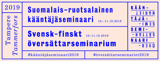 I år ordnas svensk-finska översättarseminariet i Tammerfors torsdag 10.10 – fredag 11.10. Plats: Solo Sokos Hotel Torni. Seminariet inleds med lunch och anmälan torsdagen den 10 oktober och avslutas omkring klockan 15 fredagen den 11 oktober.