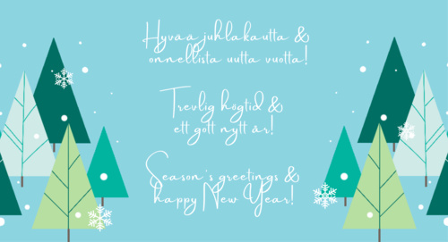 Hyvää juhlakautta ja onnellista uutta vuotta!Suomen kääntäjien ja tulkkien liitto lahjoitti vuoden 2023 joulukorttivarat presidentti Martti Ahtisaaren CMI:n Rauhanrahastoon. Kiitos yhteistyöstä, tavataan ensi vuonna! Trevlig högtid och ett gott nytt år!Finlands översättar- och tolkförbund har donerat julkortsmedlen år 2023 till Martti Ahtisaaris fredsmedlingsorganisation CMI:s Fredsfond. Tack för samarbetet, vi ses nästa år! Season’s greetings and a happy New Year!This year, instead of buying Christmas cards, the Finnish Association of Translators and Interpreters made a donation to CMI's Martti Ahtisaari Peace Fund. Thank you for your partnership, see you in 2024!