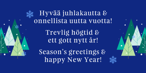 Hyvää juhlakautta ja onnellista uutta vuotta!Suomen kääntäjien ja tulkkien liitto lahjoitti vuoden 2024 joulukorttivarat kääntäjien, tulkkien ja terminologien maailmanjärjestö FITin solidaarisuusrahastoon. Kiitos yhteistyöstä, tavataan ensi vuonna! Trevlig högtid och ett gott nytt år!Finlands översättar- och tolkförbund har donerat julkortsmedlen år 2024 till den internationella organisationen för översättare, tolkar och terminologer FIT:s solidaritetsfond. Tack för samarbetet, vi ses nästa år! Season’s greetings and a happy New Year!This year, instead of buying Christmas cards, the Finnish Association of Translators and Interpreters made a donation to the Solidarity Fund of FIT, the international federation of interpreters, translators and terminologists. Thank you for your partnership, see you in 2025!