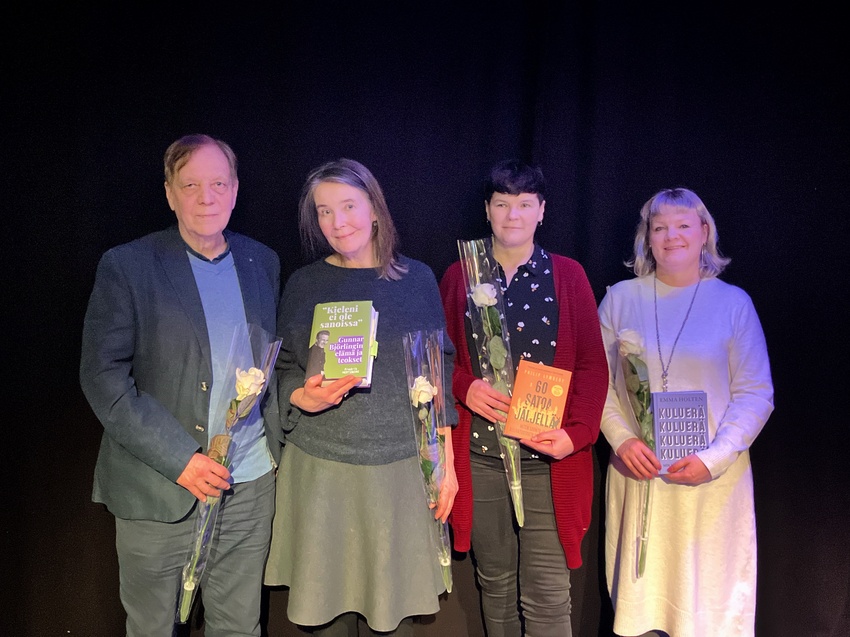 Kuvassa vasemmalta oikealle Mikael Agricola -ehdokkaat Sanna Manninen, Kaijamari Sivill, Onerva Kuusi ja Marja-Leena Mikkola.